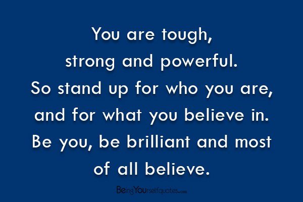You are tough, strong and powerful. So stand up for who you are, and for what you believe in. Be you, be brilliant and most of all believe.